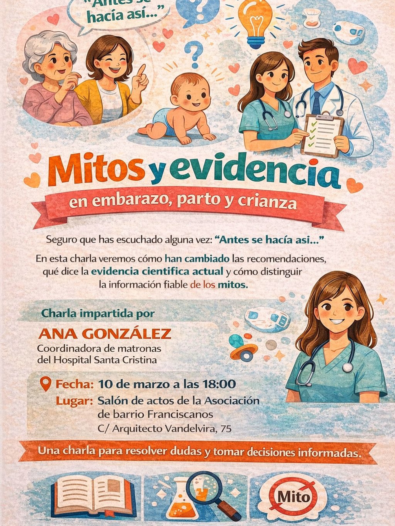 Te invitamos a esta charla donde resolveremos dudas, desmontaremos mitos y hablaremos de recomendaciones actuales para vivir el embarazo, el parto y la crianza con información fiable.